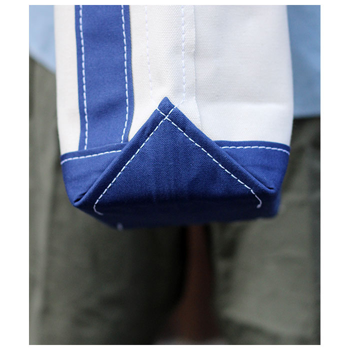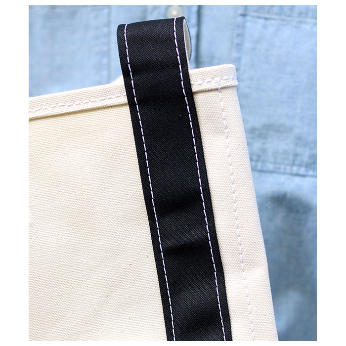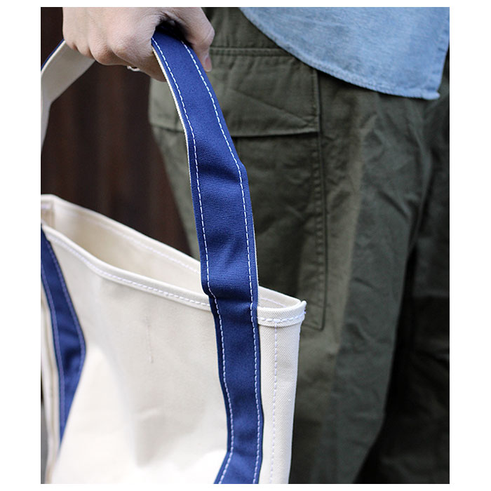 こちらはSMALLサイズ。A4ファイルがちょうどよく入るサイズ。持ち手を手前に付けているため、バゲットなどの長い物を入れても肩に掛けやすい作りが特長です。 |