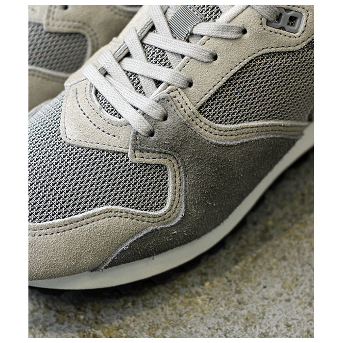 アッパーはスウェードとメッシュ素材のコンビ。こちらは2色のスウェード素材を使用しており、より立体感のあるデザイン。グレーのスウェードが上品さを醸し出し、メッシュ素材が程よいスポーティ感を演出してくれます。TRAINERよりもボリュームがあり、丸みを帯びたシルエット。またアウトソールもよりボリュームのあるものになっており、スポーティー感の強いモデルです。見た目のカッコ良さはもちろん、クッション性による履き心地の良さと耐久性の高さも魅力的な一足になっています。 |
