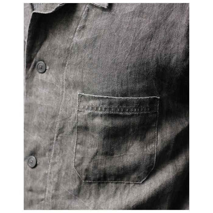 ワーク感のあるディテールが魅力的な1着。素材はヘリンボーンリネンで、洗いのかかったムラのある表情をしています。風合いあるチャコールグレーの表情がワーク感を醸し出しています。カットソーやシャツと合わせて、春夏の羽織として重宝します。 |