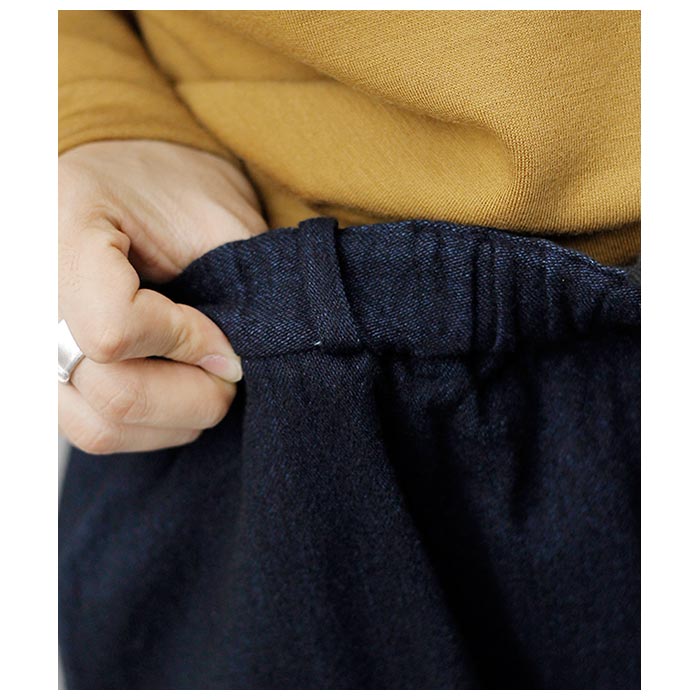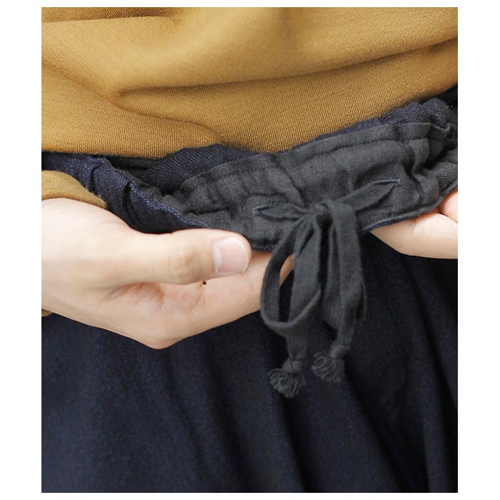 ウエストゴムと内側のオーガニックコットンの紐で、ベルトを用いなくても着用が可能です。パターンはPT-13をベースに、裾幅を太くしたストレートシルエットとし、後ろポケットも若干大きくしています。裾幅を太くした分全体のバランスを考えて、丈を若干短くしています。 ※天然素材独特の糸の節やムラ感があります。風合いを重視し、繊維長が不均一な原料を使用している為ですので、表情の一部としてお考えください。生地の糸が切れ、穴が開く可能性がある為、糸の節は無理に引っ張らないようご注意ください。 |