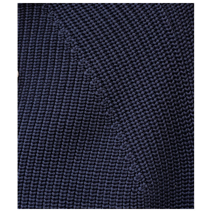 SOLID WOOLというこのシリーズの為に開発した糸を使用し、綺麗な編み目・ダレない強度・毛玉が出来にくい・チクチクしないという理想のミドルゲージニットを目指した商品となっております。2022AWから更に滑らかな風合いに仕上げております。