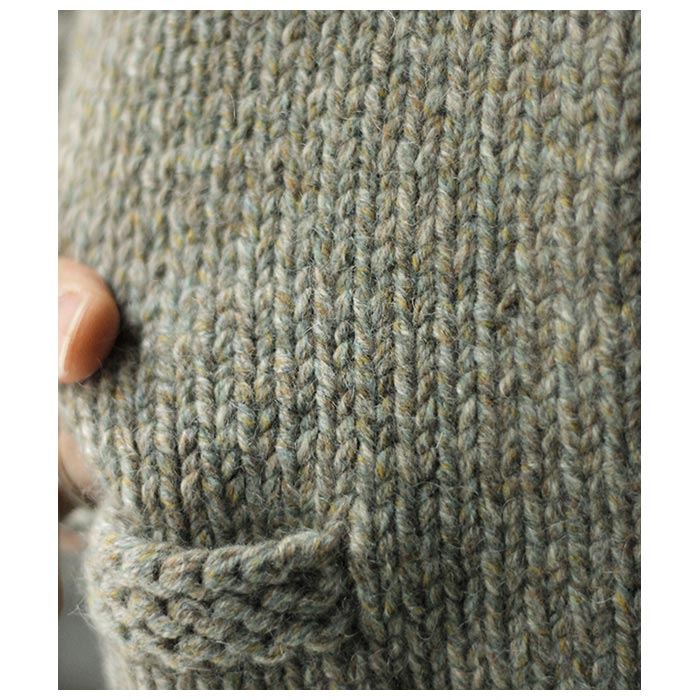 スロープスローの代表的アイテム、カウチンセーターが登場。総重量は2kg越えるヘビーウェイトなカウチンセーターを作成。不思議なことに着ると重さを感じない体に優しくフィットする快適さが魅力です。編み手の方々が嫌がるほど目を詰めて編んでいるため、自重で垂れず、メルトン素材のような保形性があります。着た時の張り感、フォルムがとても良い使い勝手に困らないベーシックなスタイルを提案しています。ファスナーはスロープスローが制作するレザー引手を採用しています。Yak/Lamb multi ply HAND KNITTING ファーストシーズンからの継続素材。ヤクと上質なラムウールを、奥行のあるカラーに仕上げるために何色も色を掛け合わせて撚糸したオリジナルの糸を使って、日本国内で一枚一枚手編みで編んだニット。 今回は全て新しい色で糸を制作したこだわりが詰まっています。 ちょっと渋く奥行のある淡い色をイメージしたfog、黒の代わりにはほぼ黒に近いdark navyを制作。全て何色もの色を掛け合わせて深い色合いに仕上げています。