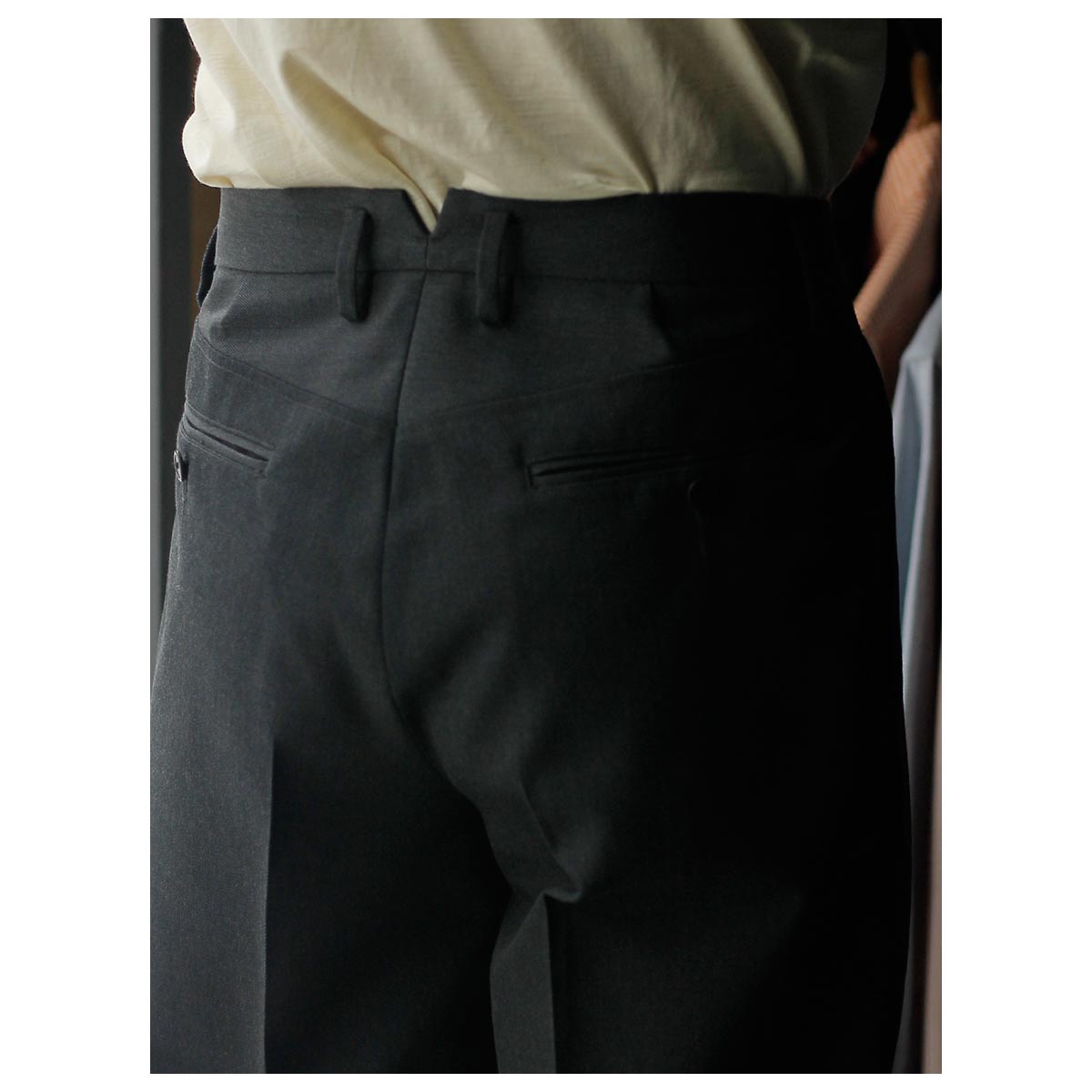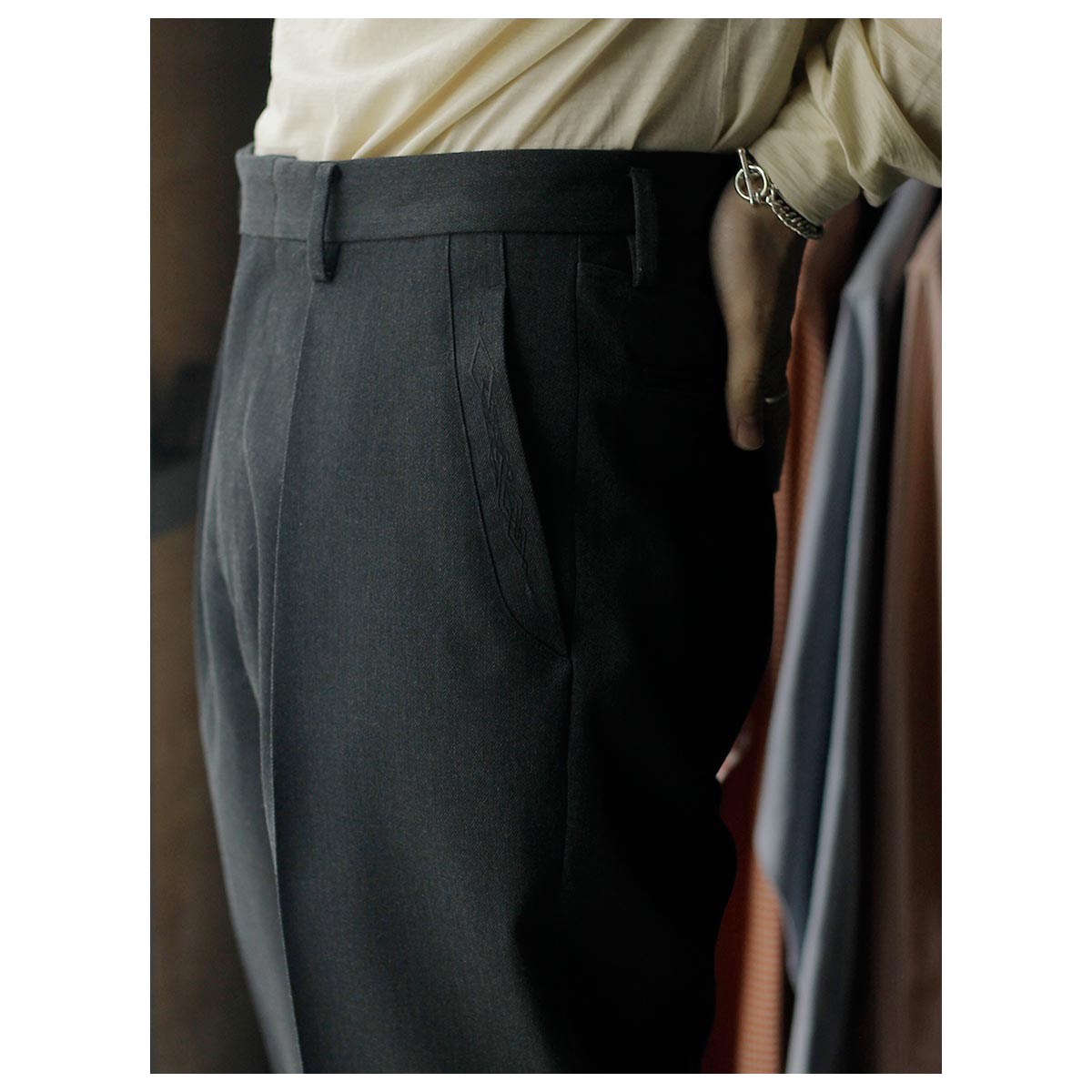 ハイツイスト ウール ギャバジン タック エンブロイダリー スラックス