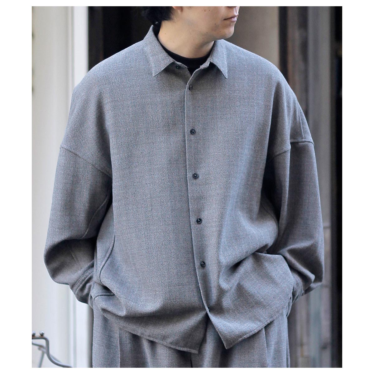 ルーズ ウェービング ヘリンボーン ドレーピング シャツ タイプA