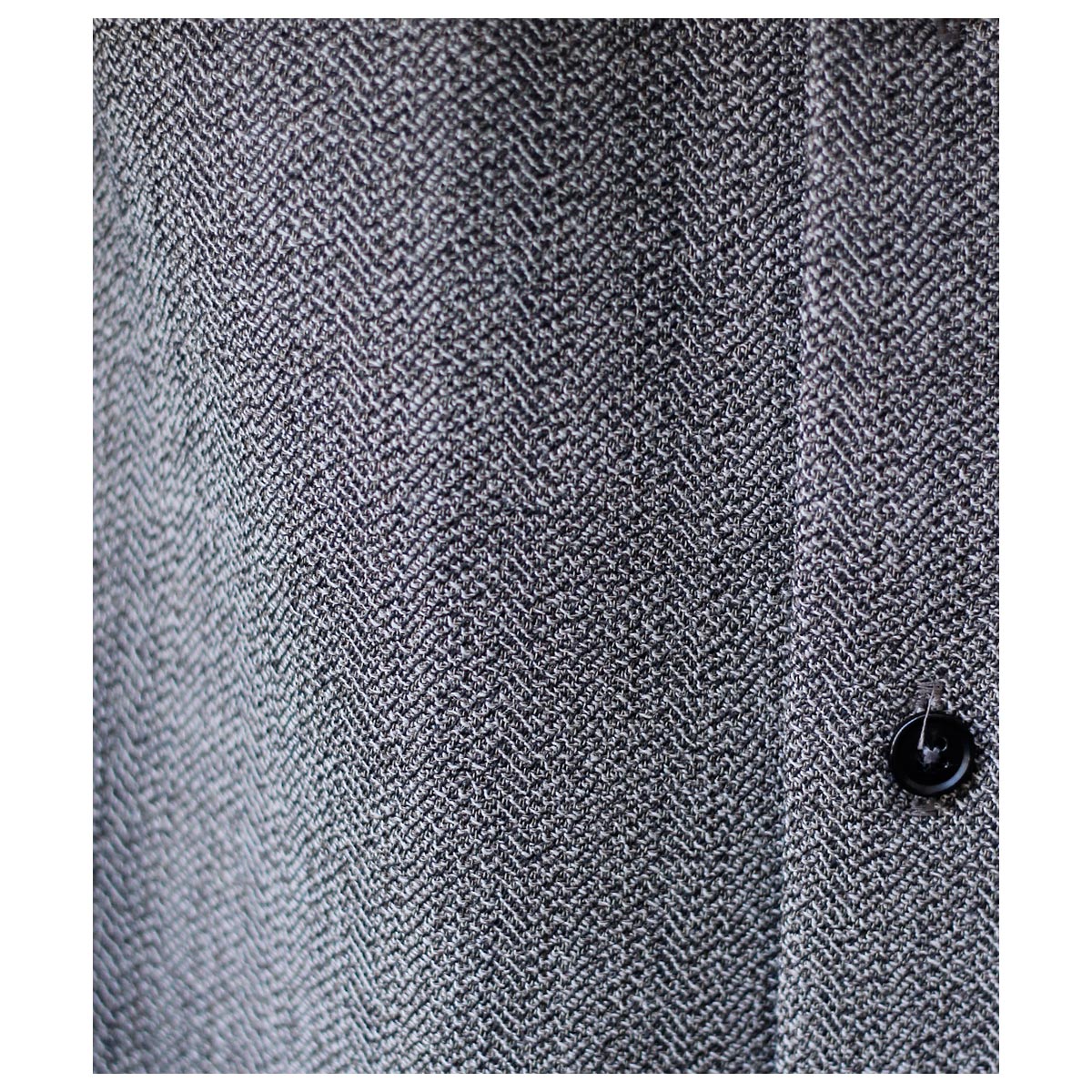 こちらはルーズヘリンボーンというオリジナルの組織です。ヘリンボーン組織を手でほぐし、曖昧に散らして自分の理想的なバランスを織りで再現しました。ルーズと名付けましたが消して甘い織密度でございません。しっかりと打ち込まれた密度に梳毛の糸によるドレープが生まれております。