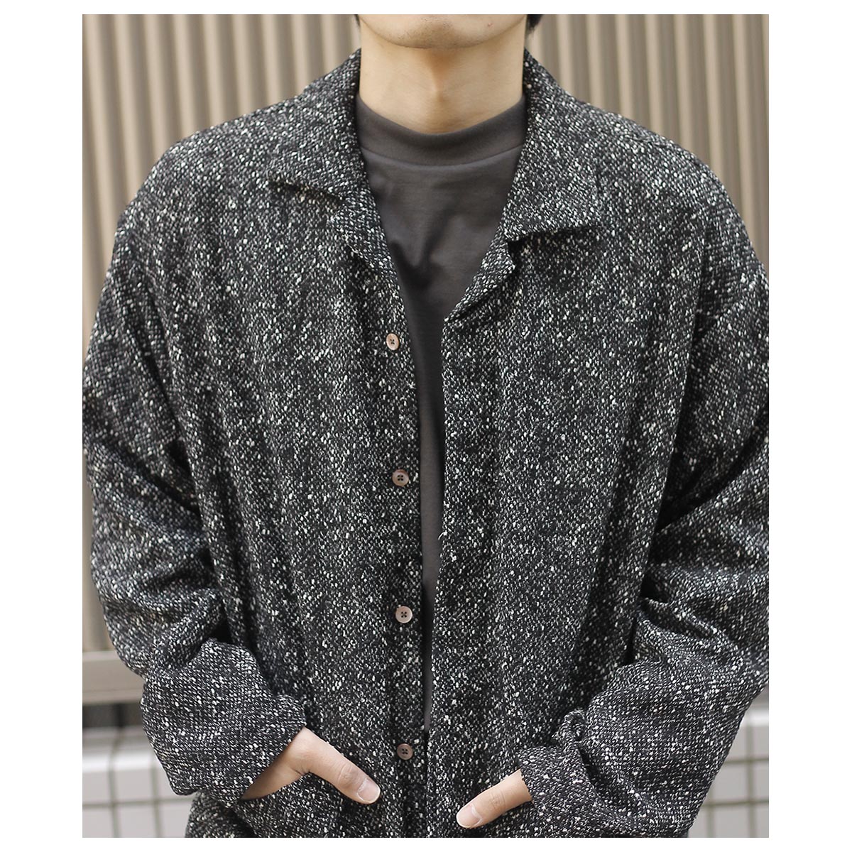 ブランド検索 > 【I】 > インテリム │ INTERIM > インテリム INTERIM テクスチャード ドネガル ブークレ デッドストック ハイパービッグ フライ フロント シャツジャケット TEXTURED DONEGAL BOUCLE DEADSTOCK HYPER BIG FLY FRONT SHIIRTS JACKET (IT25A073)