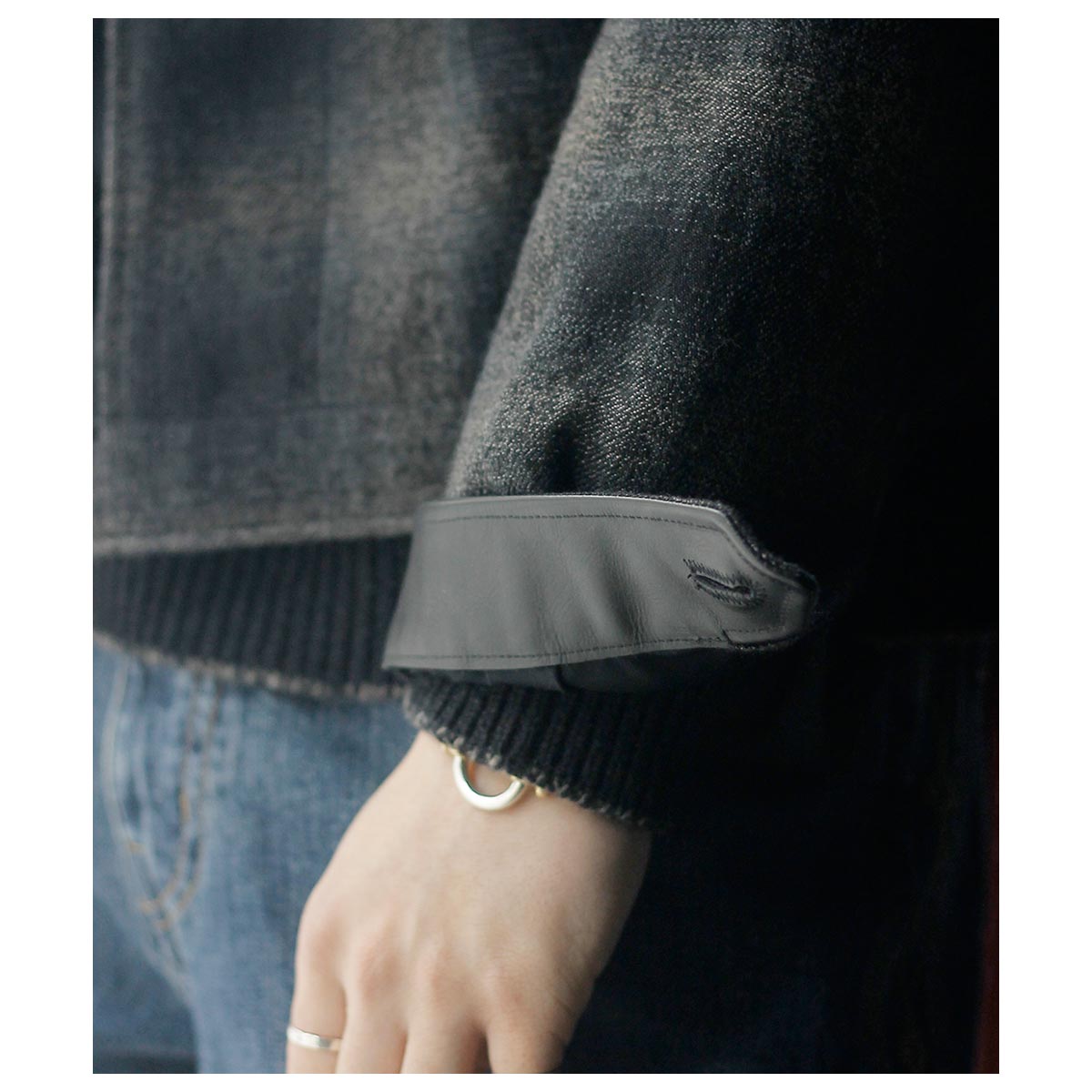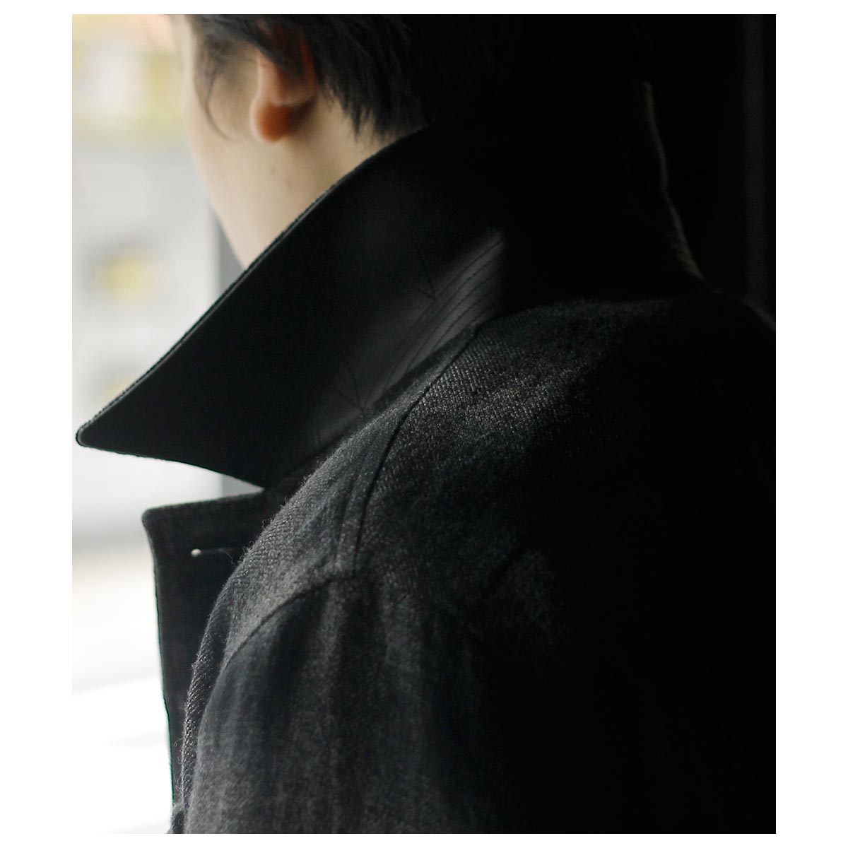 生地にはオリジナルのリネン/ウールのオンブレチェック生地を使用。リネン特有のネップ感とウールの膨らみにより凹凸があり表情のある生地です。色の境目がぼやけたような独特のニュアンスがあり、唯一無二な雰囲気を持つ1着。袖裏、襟裏、腰裏に配したカウレザー等のディテールがサルトらしいアクセントになっているのが魅力。繊細な技術と手間のかかったスペシャルなジャケットです。 |