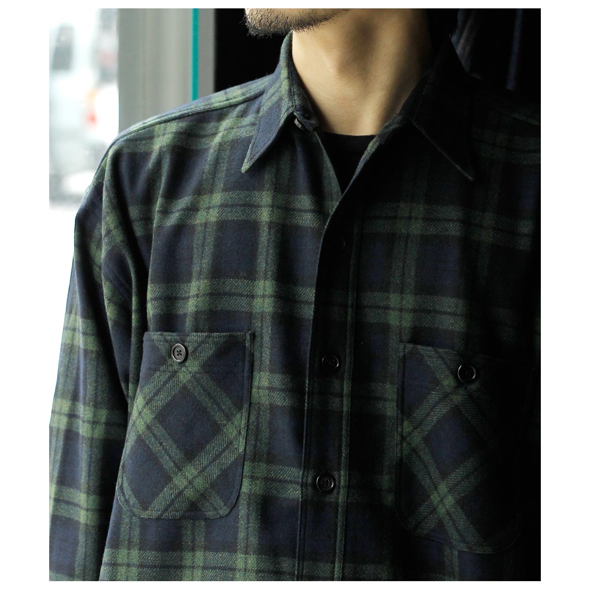 ハイパービッグ タータンチェック ウールドレープ デッドストック ミリタリー ワークシャツ