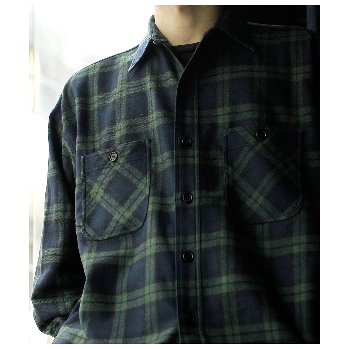 HYPER BIG TARTAN WOOL DRAPE DEADSTOCK MILITARY WORK SHIRTS