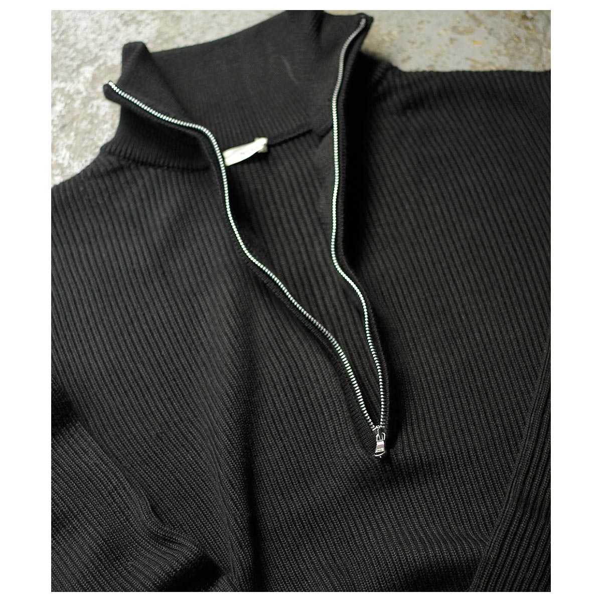 ウール シルク カシミヤ デッドストック ヤーン ダブル リブ ハーフジップ ニット