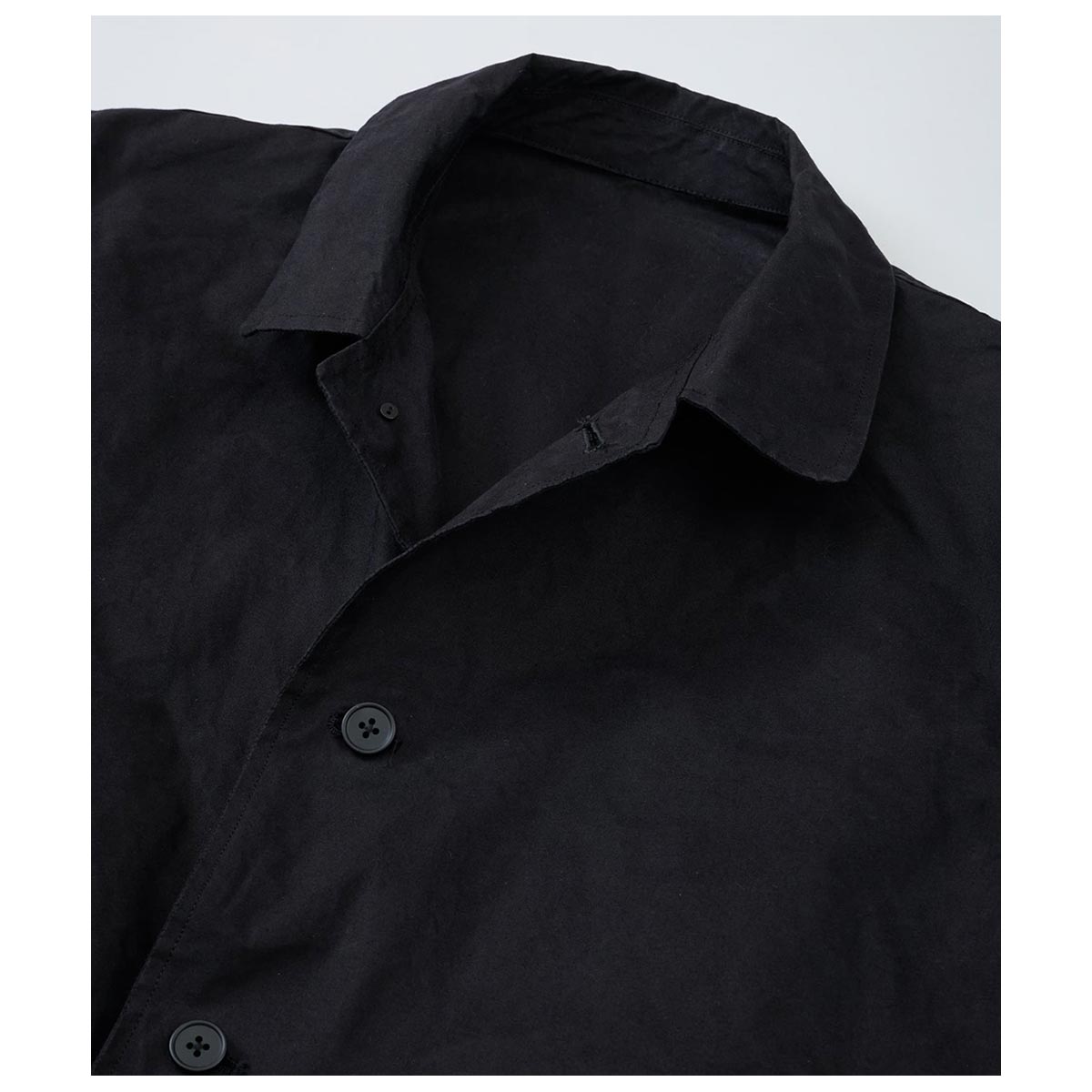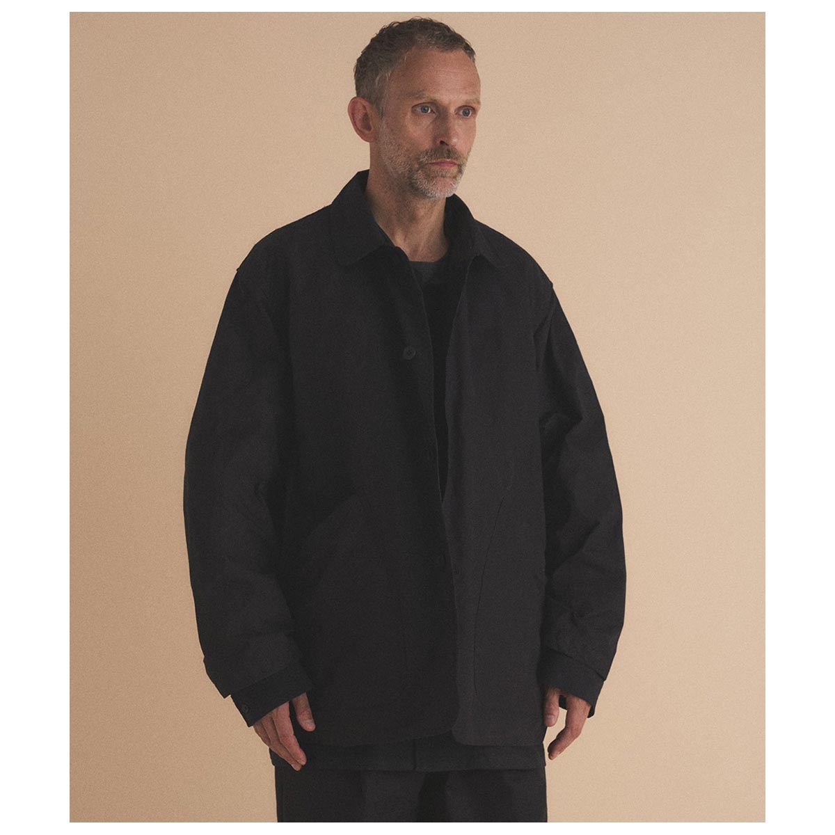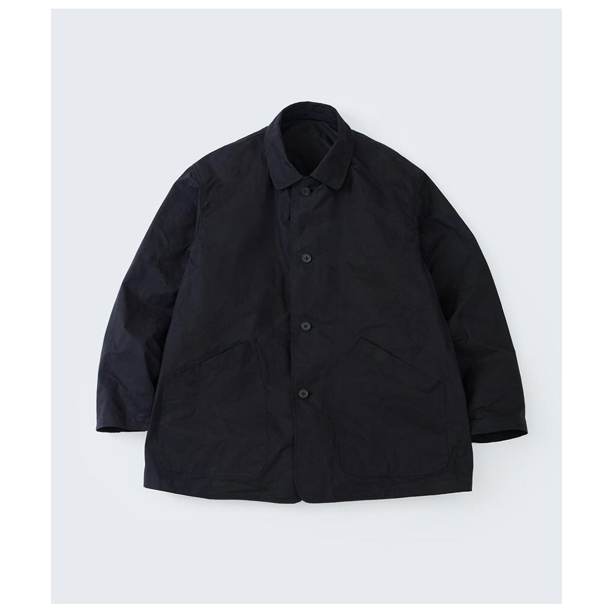 デザイン面では、アメリカの伝統的なアウトドアフィールドコートをベースに、襟の形状、ポケットサイズ、腕周り、全体のシルエットに至るまで、すべてのパターンをゼロから再構築しました。ハーフコート丈のバランスで、シャツやニットの上から軽く羽織るだけで様になり、日常使いにも適した一着に仕上げています。両胸の見返しには、それぞれ内ポケットを配置し、実用性も兼備。ボタンには艶を抑えた本水牛ボタンを採用し、使い込むほどに自然な光沢が生まれます。 |