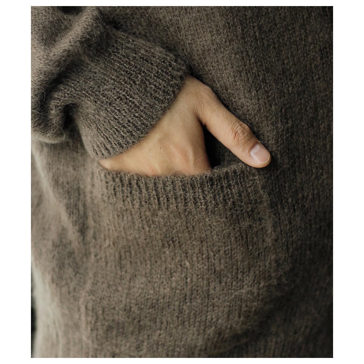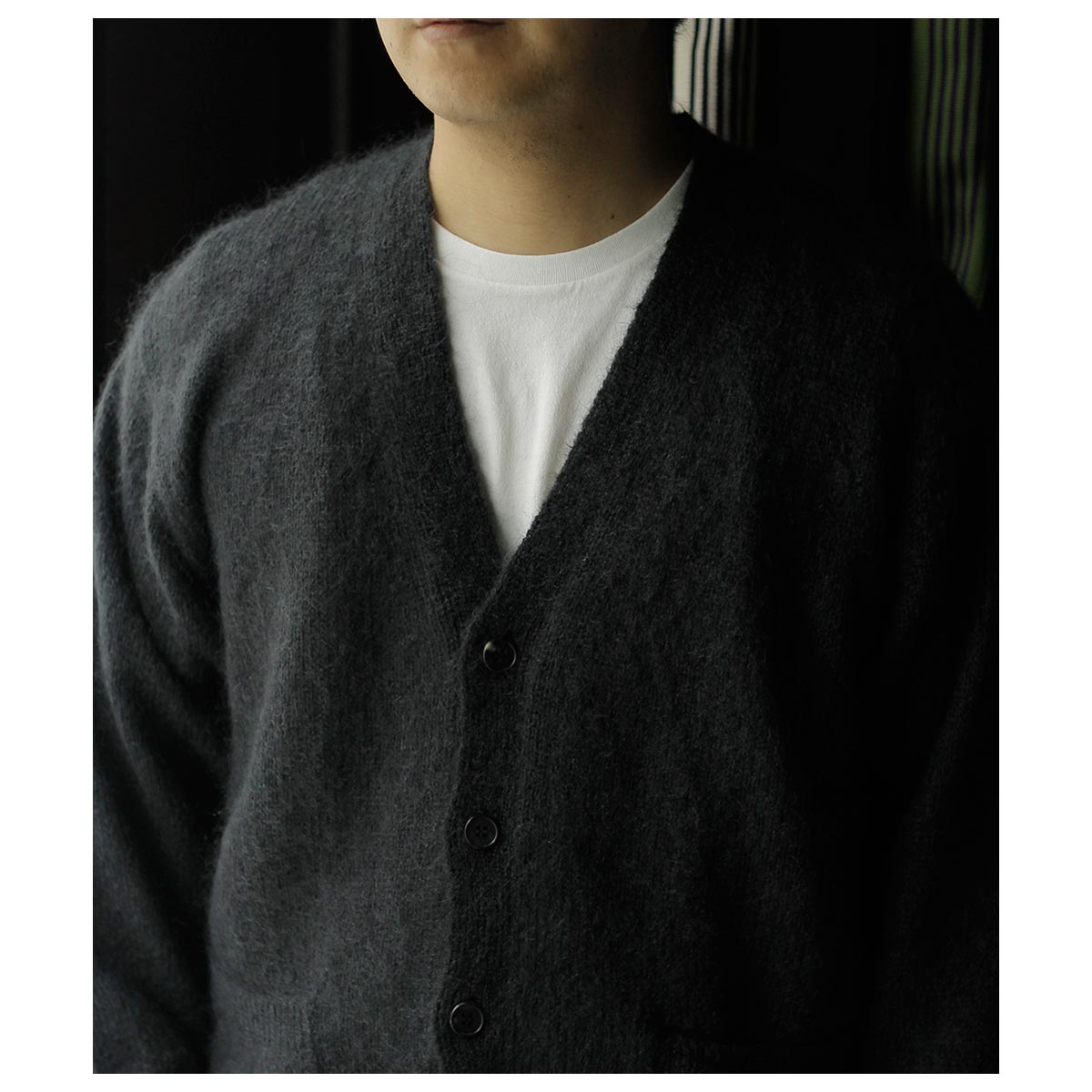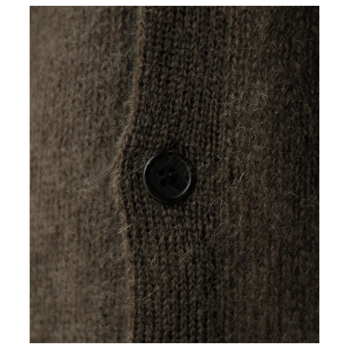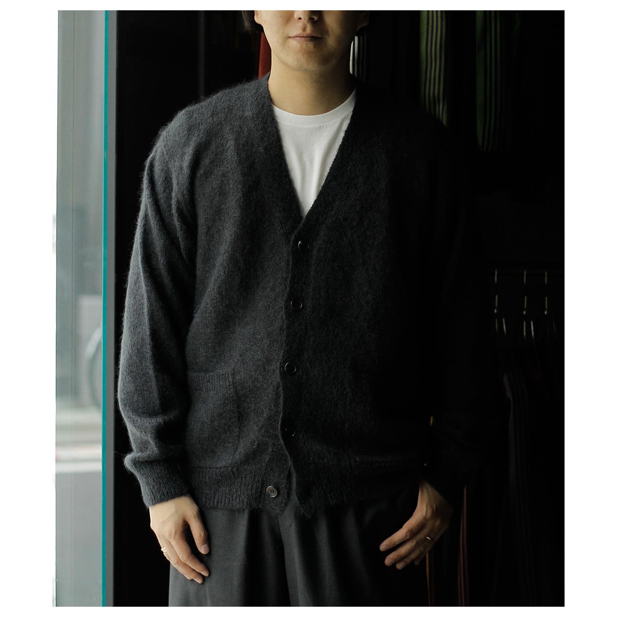 バトナーから贅沢なモヘヤ100%のVネックカーディガンセーター。 スーパーキッドモヘヤのみで構成したBATONER独自のモヘヤ100%シリーズ。 純粋なモヘア100%のピュアな風合いを味わってもらうために通常難しいとされる紡績方法で糸を作り、更に風合いを最大限に引き出す為にゆっくりと時間をかけて編み立てています。モヘヤならではの光沢感と滑らかさ、起毛感が特徴の商品です。