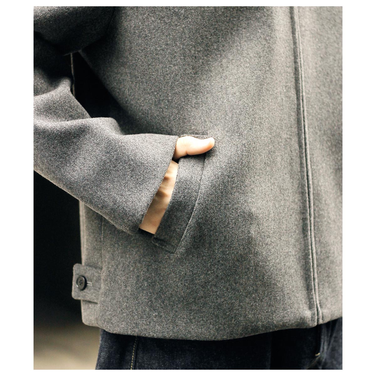 ブランド検索 > 【I】 > インテリム │ INTERIM > インテリム INTERIM ヘビー メランジ フェルテッド ヴァージン ウール デッドストック レザーカラー ハリントン ジャケット HEAVY MELANGE FELTED VIRGIN WOOL DEADSTOCK LEATHER COLLAR HARRINGTON JACKET (IT25A107)