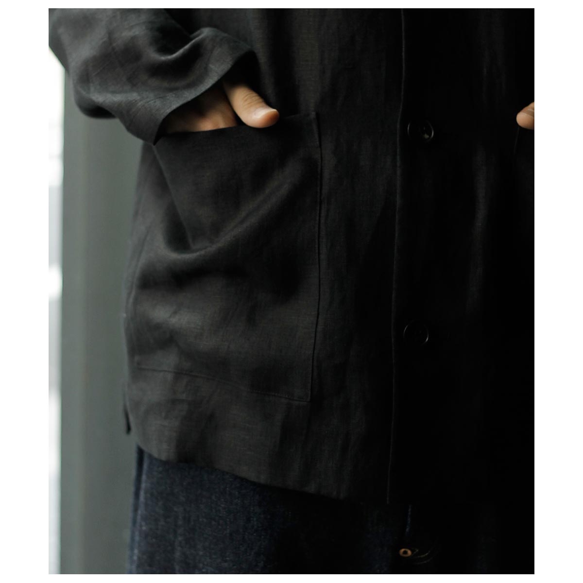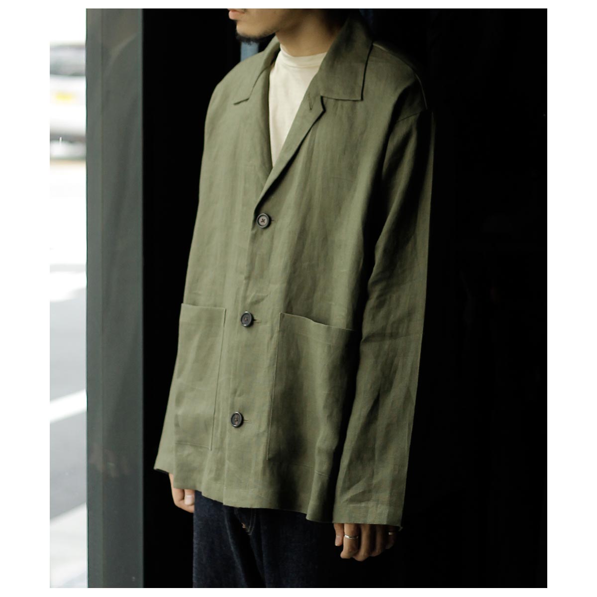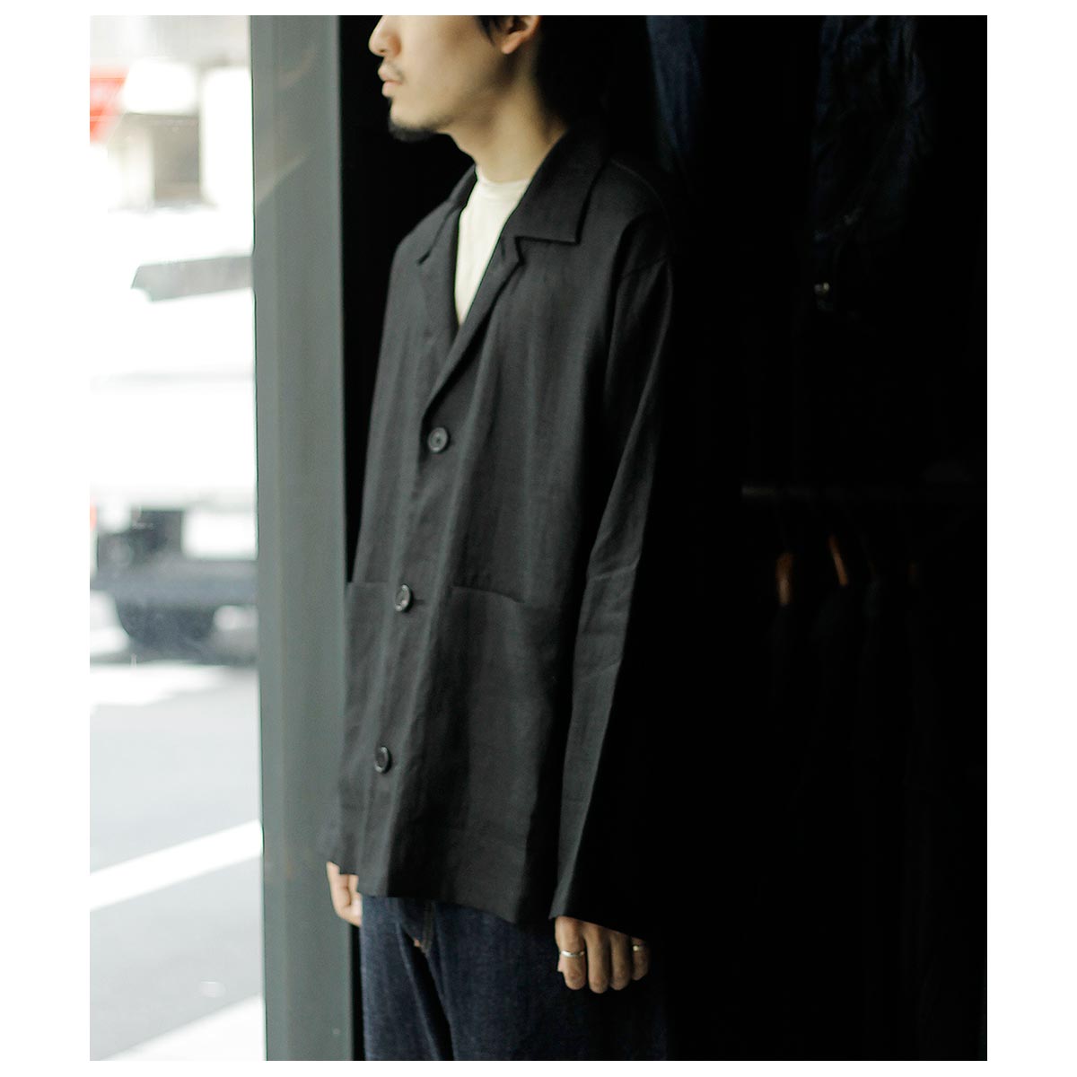 インテリム INTERIM スーチング リネン オープン カラー オーバー シャツ ジャケット SUITING LINEN OPEN COLLAR OVER SHIRT JACKET (IT26S029)