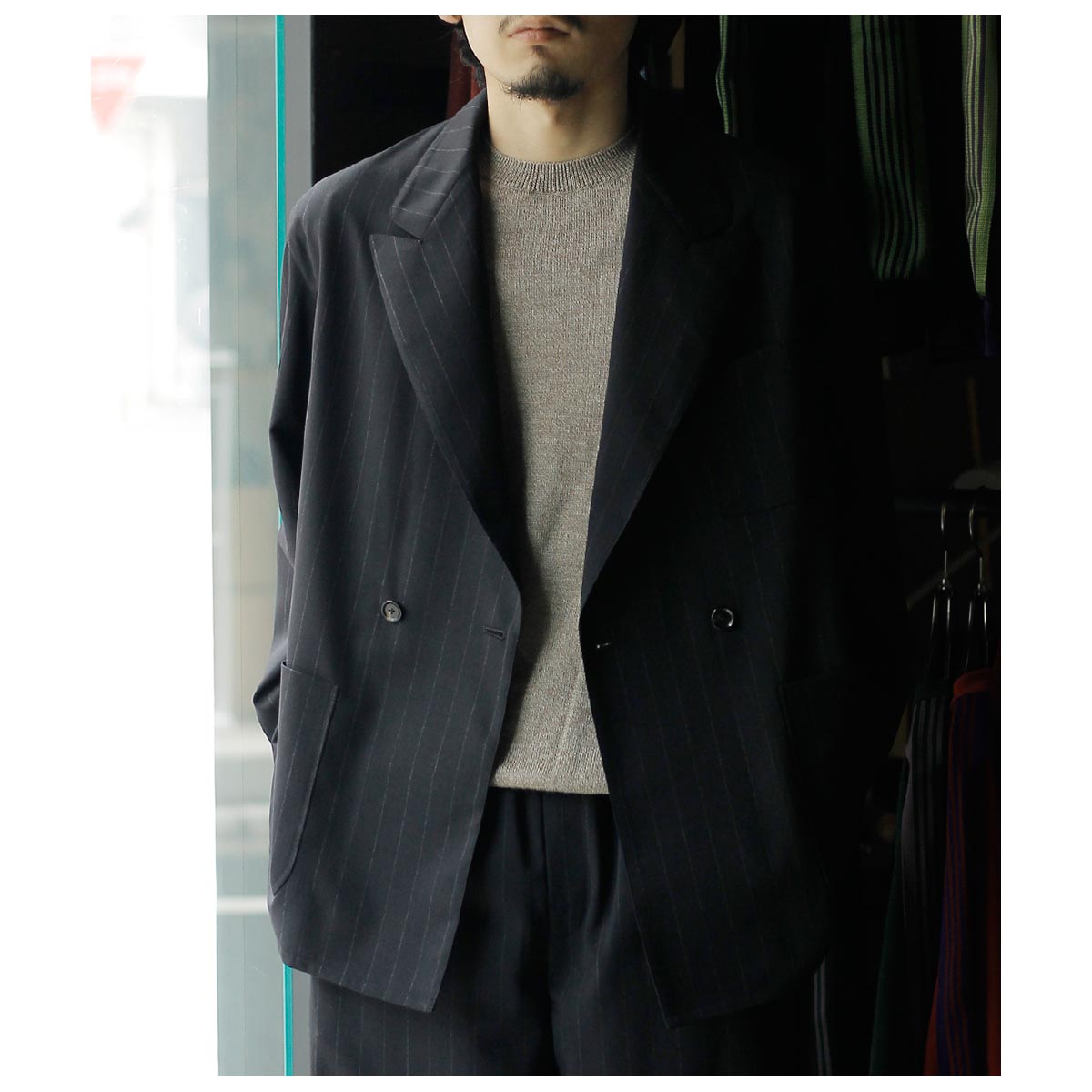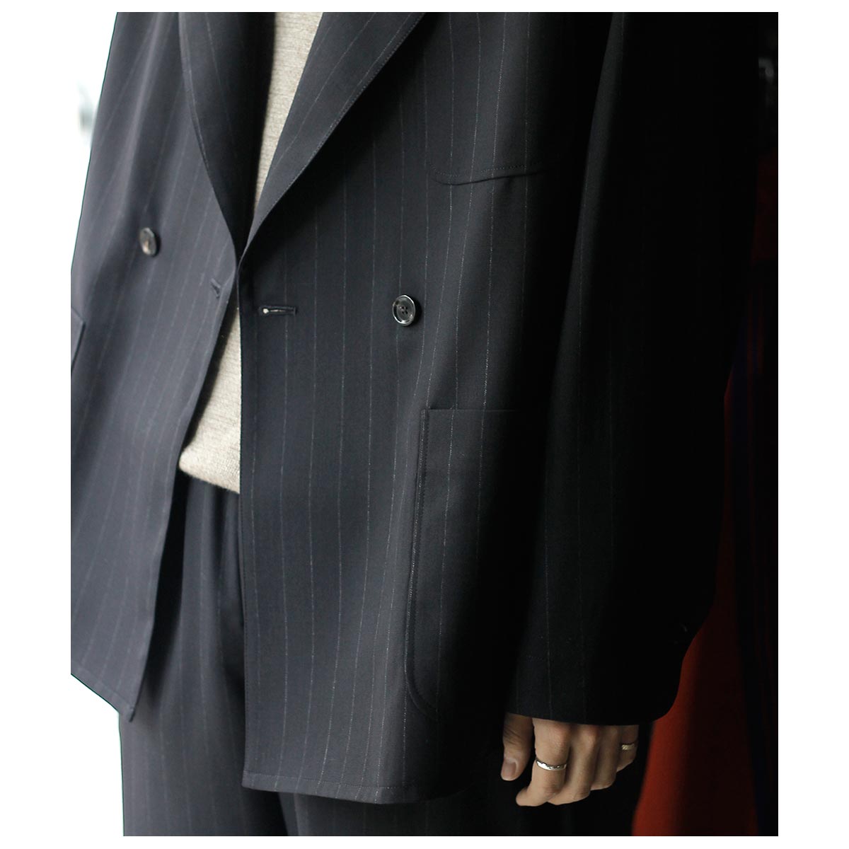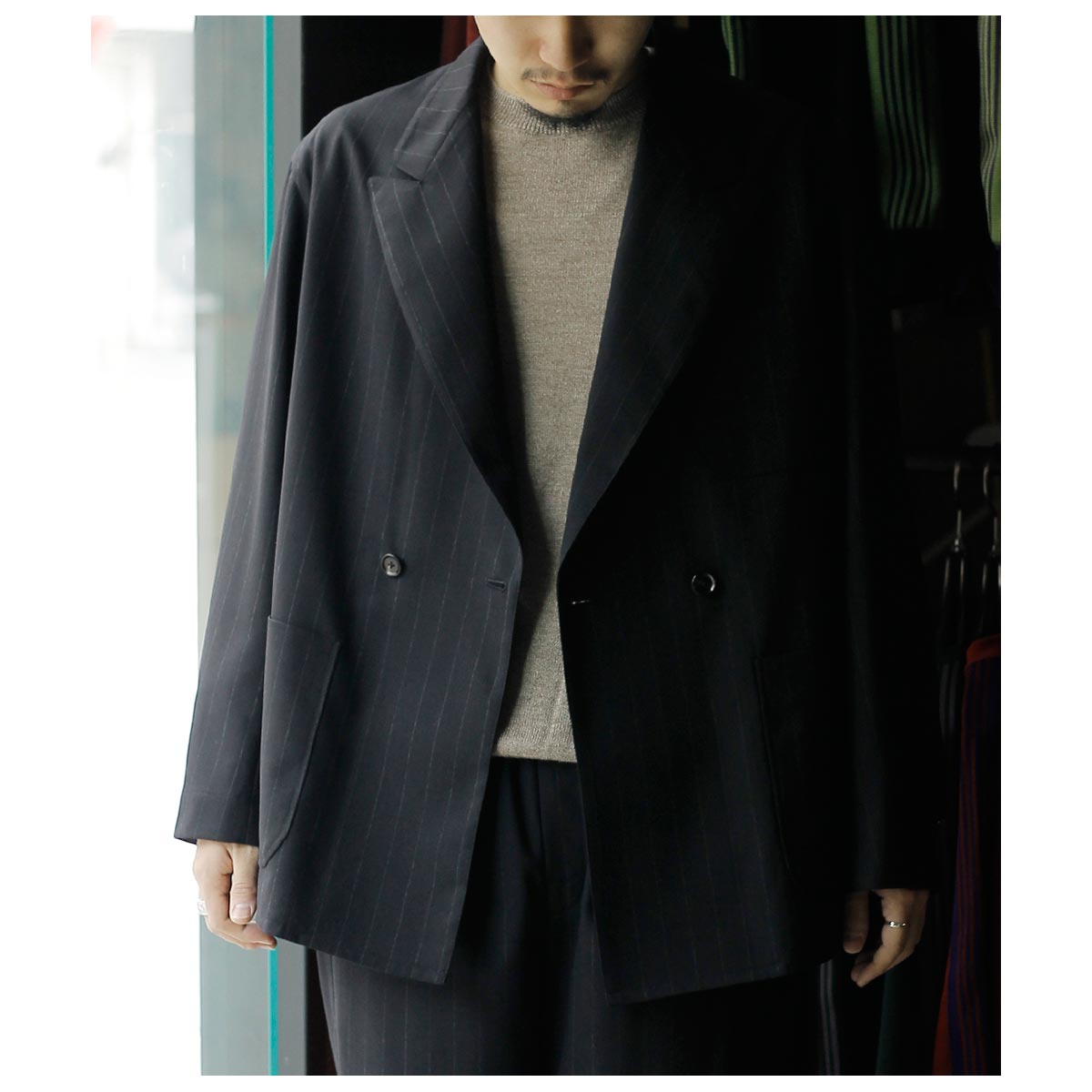 ハイツイスト ウール チョーク ストライプ ダブル ブレスト ジャケット