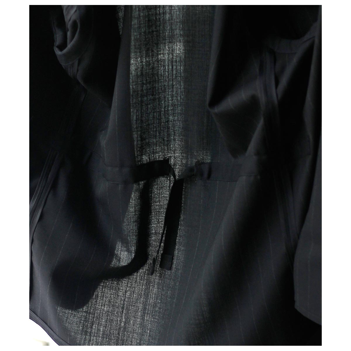 今迄のシェイプの効いたシルエットとは違った、ゆとりのあるボックスシルエットが特徴。拝み合わせのカフスや、背裏に配されたドローコード等、サルトらしいディテールも盛り込まれた一着。