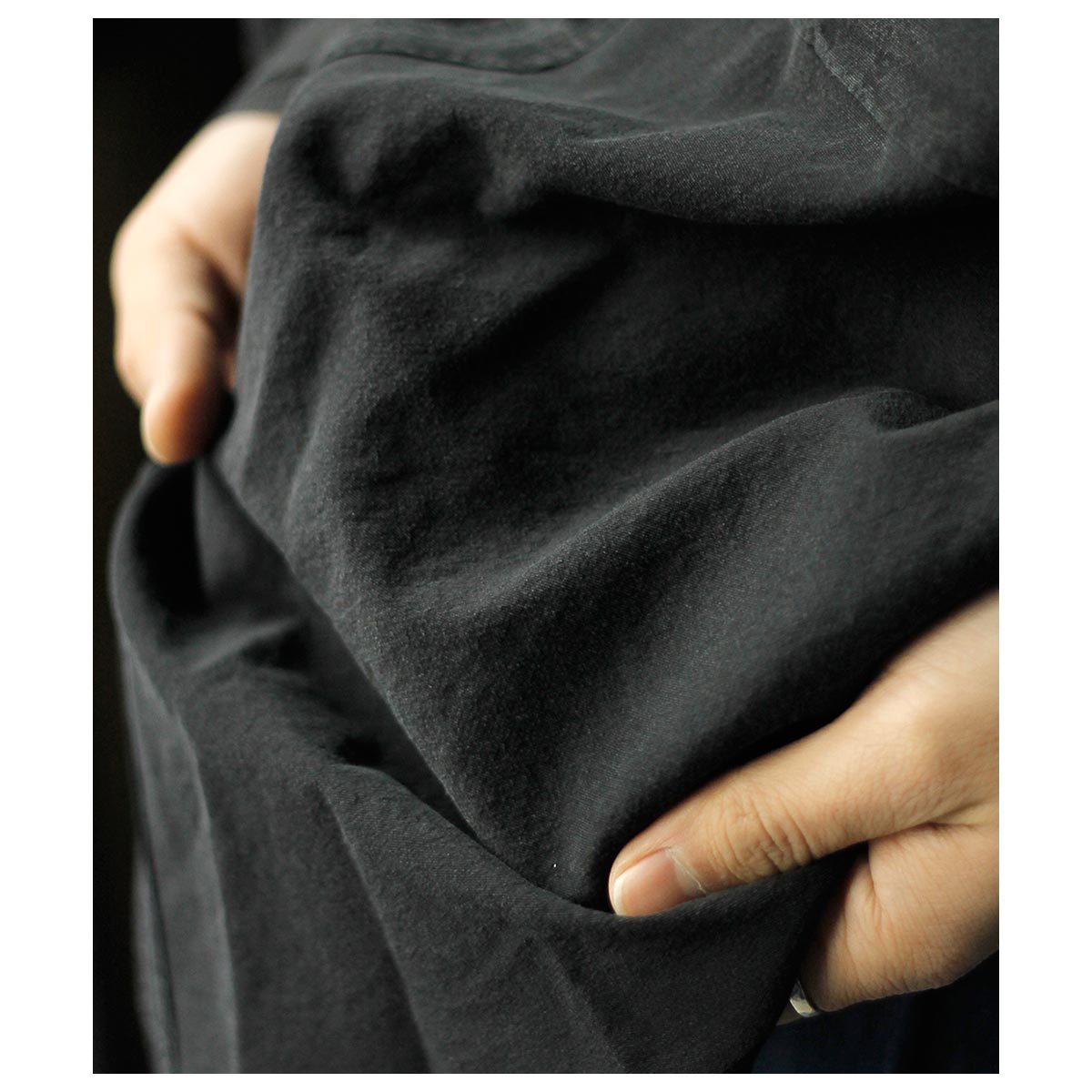 オリジナルのコットン/シルク生地を採用。更に洗いをかける事で自然なフェード感を表現しています。