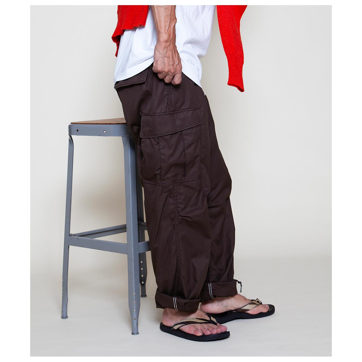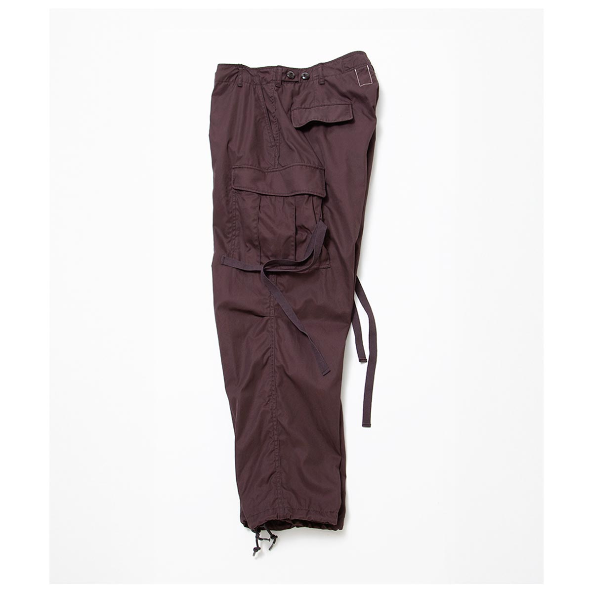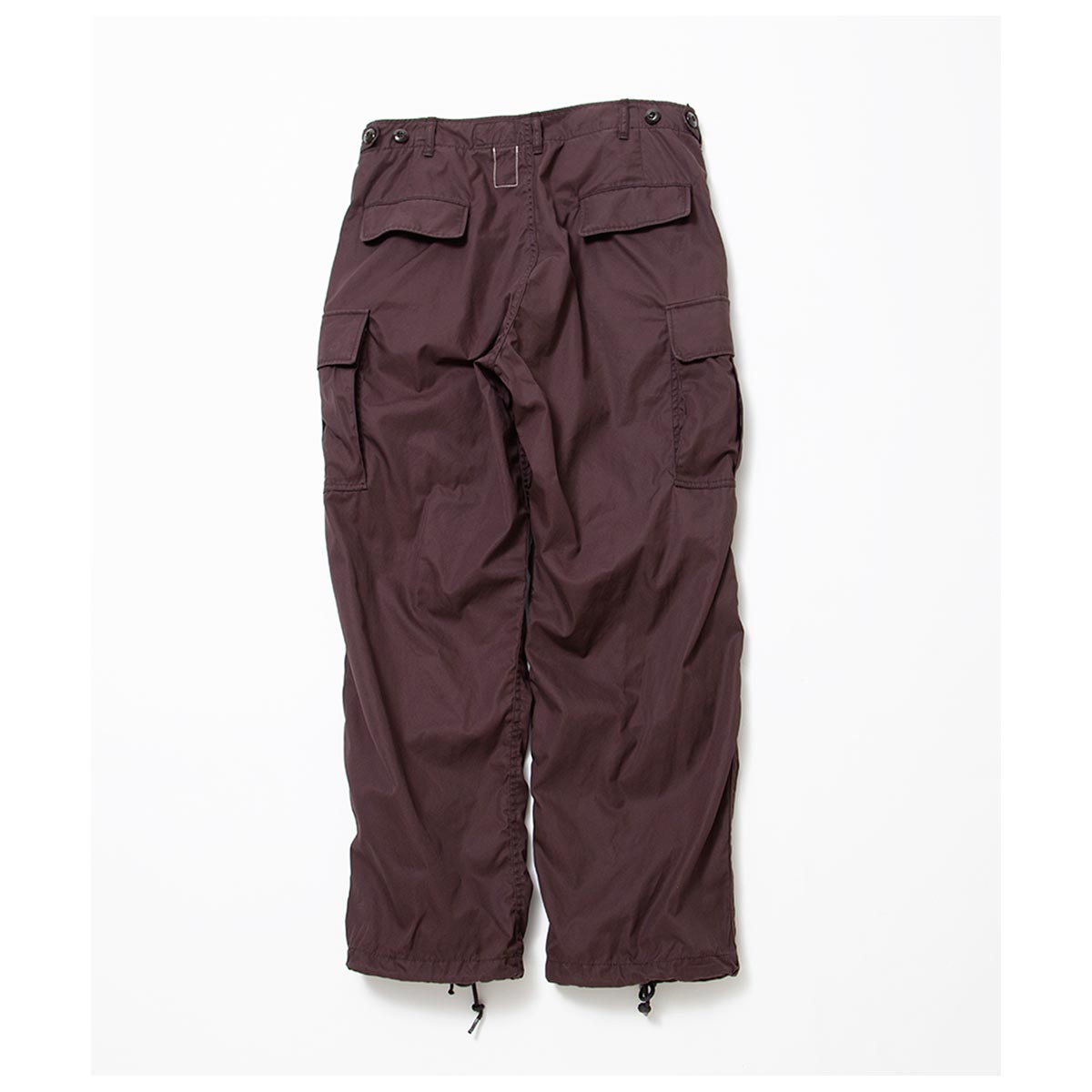 1960 年代ベトナム戦争で使用された米軍ジャングルファティーグパンツ(2ndモデル)に着想を得た、ブランドのシグニチャーアイテムです。ジャングル戦を想定した軽量かつ機能的な設計を継承し、ゆったりとしたシルエットと豊富なポケットが特徴。無駄を省いた「必要最低限の機能美」を体現しています。 独自に進化したやや太めのテーパードシルエットで、快適かつ洗練された履き心地を実現。カーゴポケットをコンパクトに改良し、重心を上部に設定することで、日常使いに最適なバランスとスタイルを提供します。