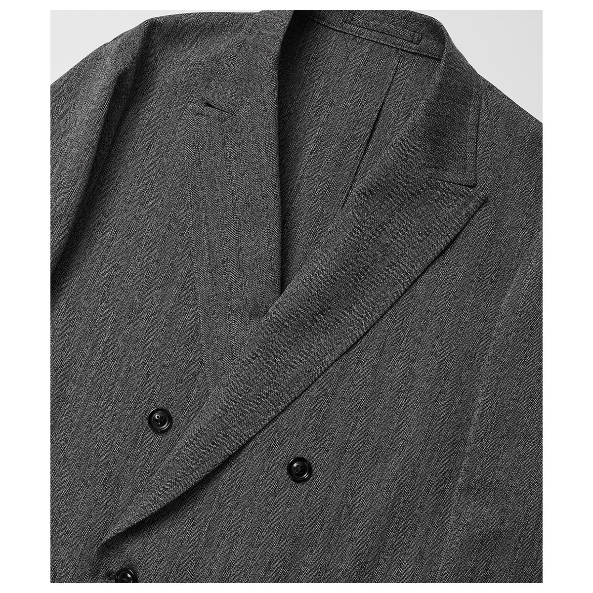 アップデートを繰り返しながら国内屈指のテーラード工場にて製作しているダブルブレステッドジャケット。熟練の職人による本格的なテーラード技術を駆使し、自然体で羽織れる事を前提としたデザインや仕様、素材選定を特徴としています。端正な美しさの中にカジュアルでデイリーな感覚を持たせたアンコン仕立てのジャケットです。