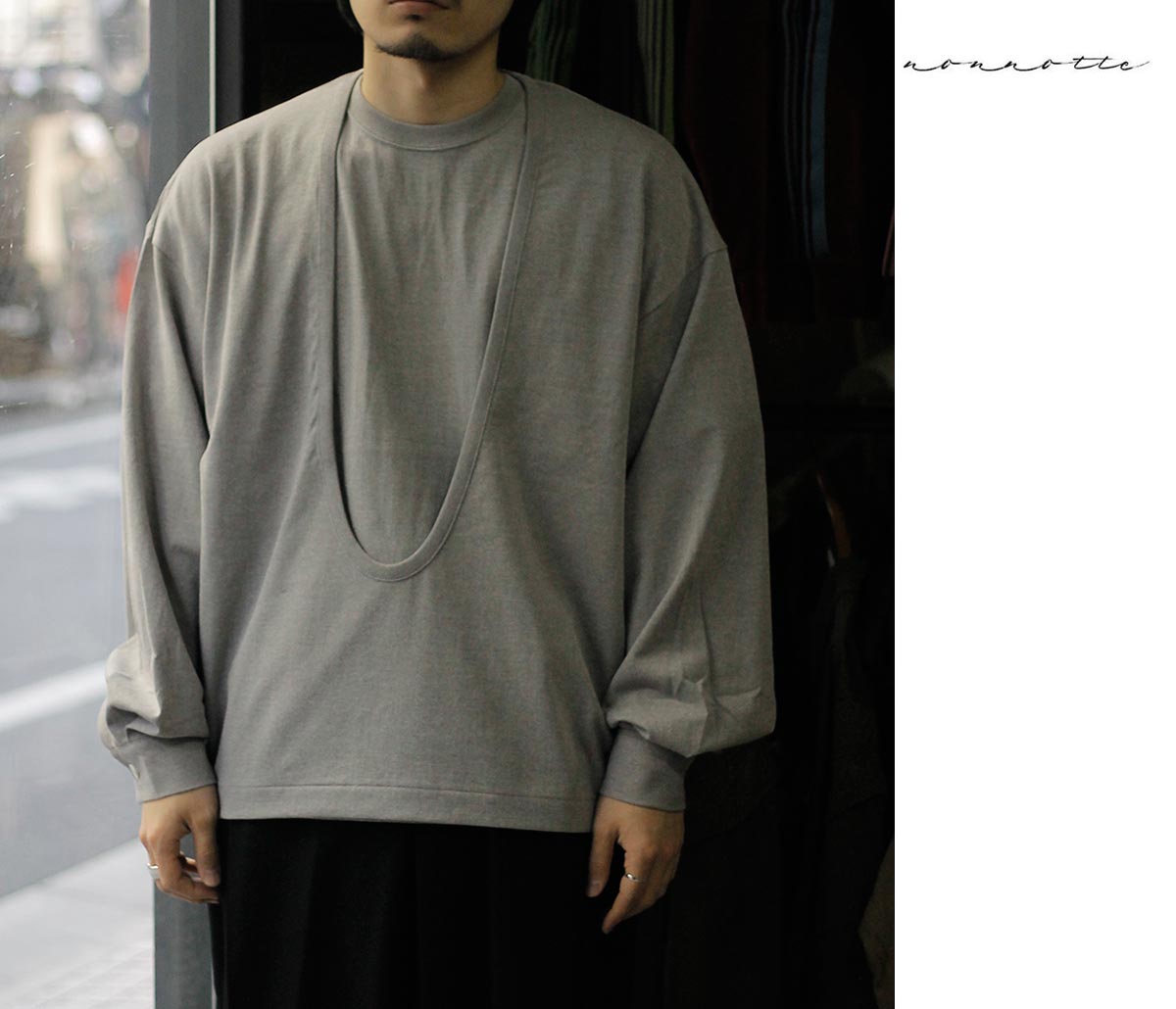ブランド検索 > 【N】 > ノノット │ NONNOTTE > ノノット NONNOTTE ハード ツイスト バランスジャージー ドレープ Uプルオーバー カフス スリーブ Hard Twist Balance Jersey Drape U Pullover with Cuff Sleeve (N-26S-093)