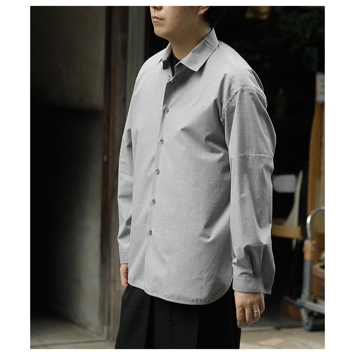 | マナベ MANAVE タックカラーシャツ グレー Tuck Collar Shirts GRAY MADE IN FRANCE (CH00-26SS-GR)|アンドフェブ公式通販 |