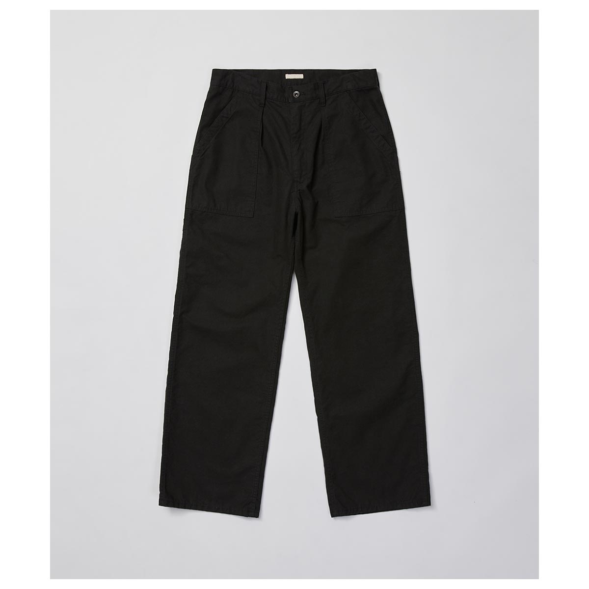 ビンテージのユーティリティパンツとペインターパンツをミックスしたワークパンツ。 フロントの隠しタックでヒップ周りの分量感を出しながら程良いワイドシルエットに仕 上げています。