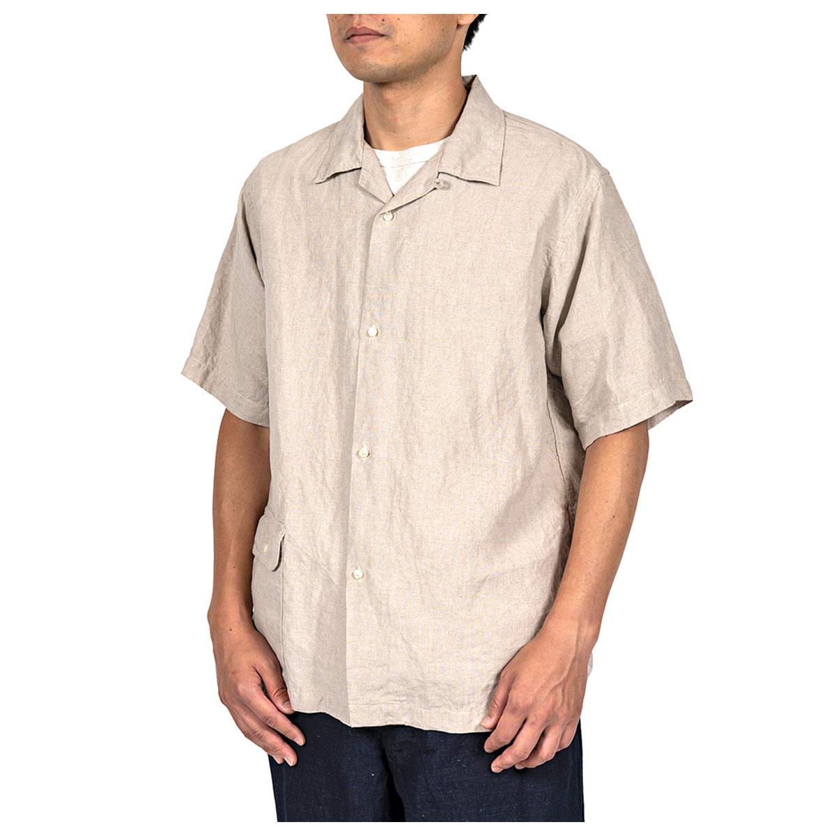 素材には、5.5オンスのリネン100%・平織り生地を採用。 軽すぎるリネンではなく、適度な厚みと糸の太さを持たせることで、リネン特有の“揺れ”や“動き”をしっかりと感じられる風合いに仕上げています。
